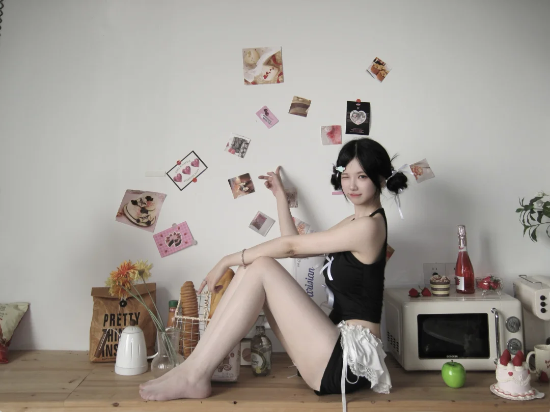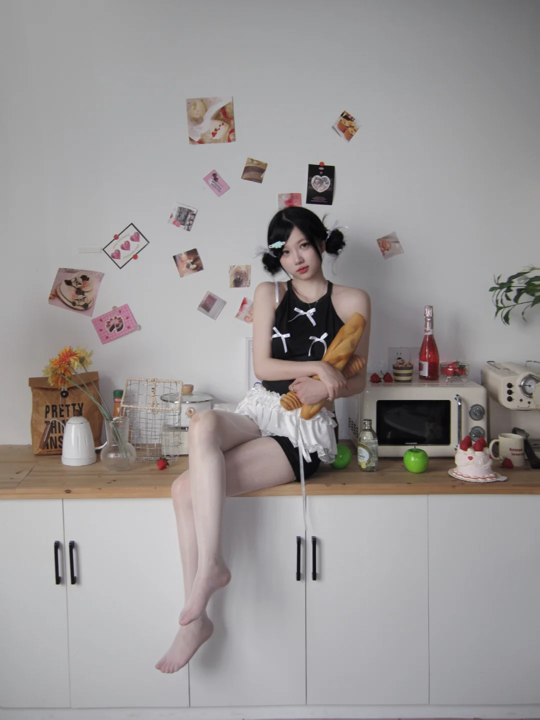 厨房场景太好拍啦 可以坐在台子上这样用一些可爱的小物品