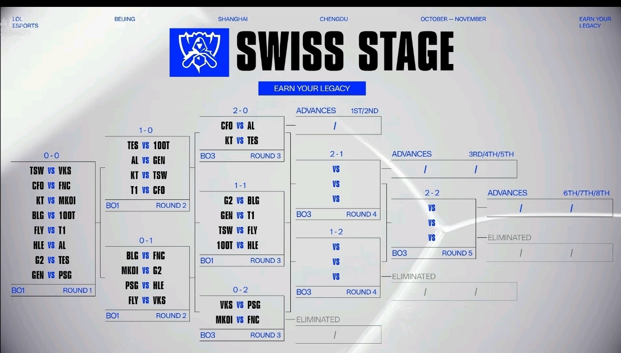 英雄联盟S15全球总决赛瑞士轮第二轮在10月16日迎来巅峰对决,LPL赛区三支劲旅(TES、AL、BLG)如猛虎下山般全线告捷。其中TES与AL以摧枯拉朽之势挺进2-0组,BLG则如悬崖边起舞的勇士,惊险斩获首胜。而来自中国台湾的CFO战队更是在这场电竞盛宴中投下一枚震撼弹,以秋风扫落叶之势击溃卫冕冠军T1,彻底改写了瑞士轮的竞争格局。以下是当日战况的精彩回放: