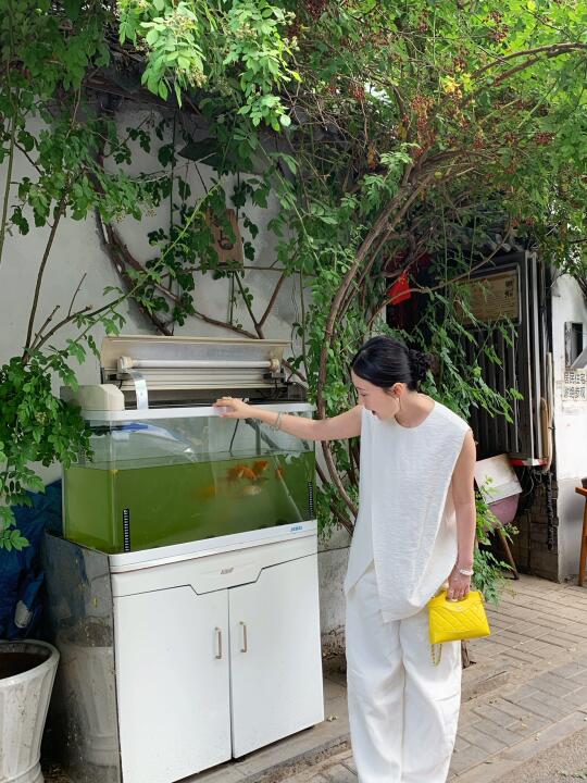 炎热的天气迎来了北京的盛夏 好在今天雨过天晴 去北锣鼓巷溜达了一圈 盛夏的胡同仿佛回到了儿时夏日奶奶家后院门口 还偶遇到了一个大鱼缸 别说这里随便拍一拍还挺出片 今年夏天更爱亚麻ootd了 一套干净的老钱亚麻套装 在夏日里真是又清爽又凉快🍃