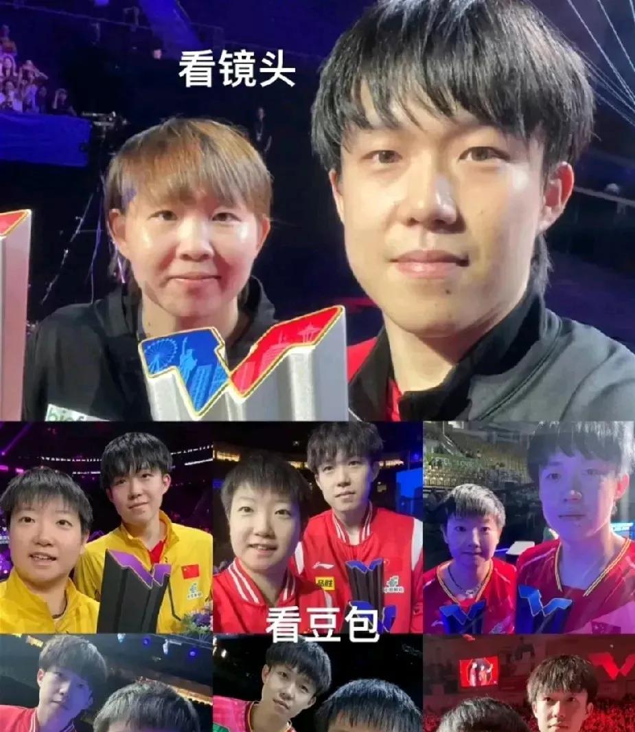 没想到王楚钦还是个如此双标的人, 在跟朱雨玲合影时, 就像是在应付检查, 表情没有任何波澜, 不知道的还以为是在拍证件照, 但是当对象换成了莎莎, 那状态可以说是一百八十度转弯, 看莎莎的眼神都带拉丝, 比那拔丝地瓜还要甜, 原来在乎一个人的眼神是根本藏不住的, 多么希望两小只可以一直这样走下去, 你是否也是这么希望的