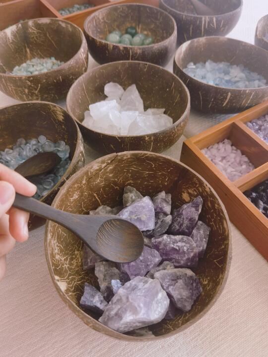 最惊喜的是!根据脉轮测试结果,可以自己挑选对应的天然水晶矿石🪨!每一颗都采集自大自然,饱含着纯净的天地精华✨。它们都能针对性地帮我调和、传递缺失的能量部分。捧在手里,能真切感受到那份沉甸甸的自然馈赠~