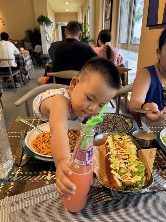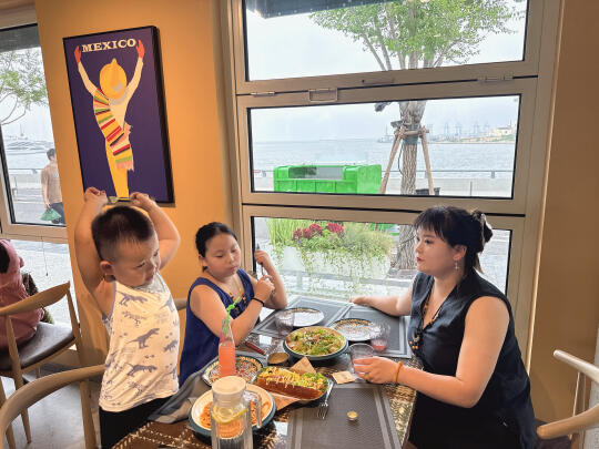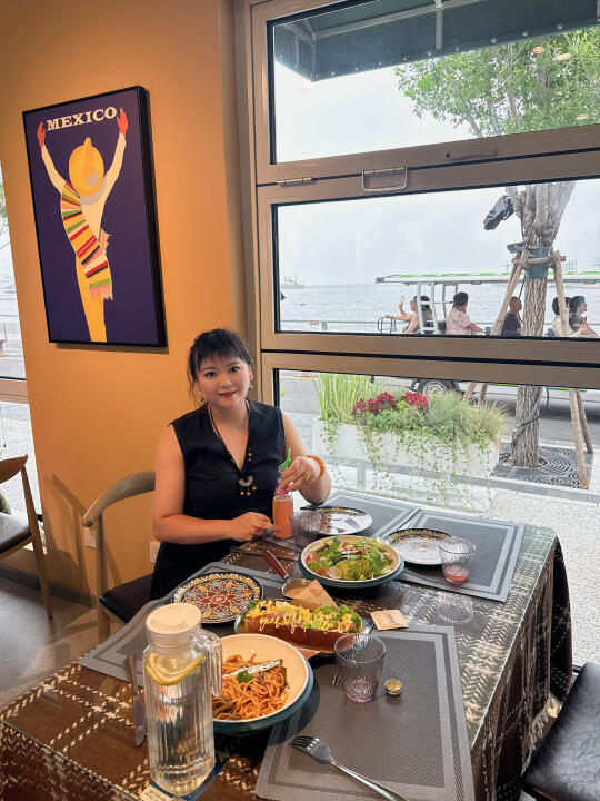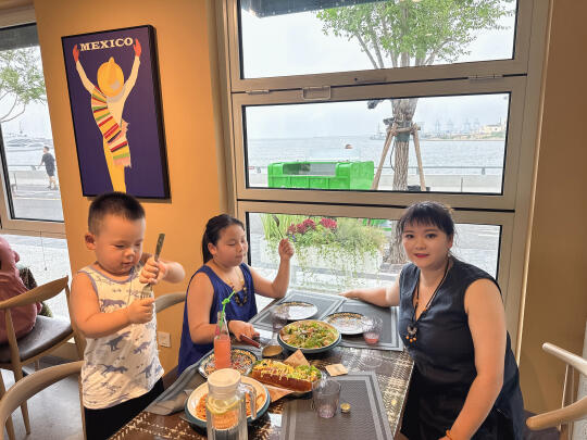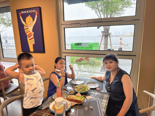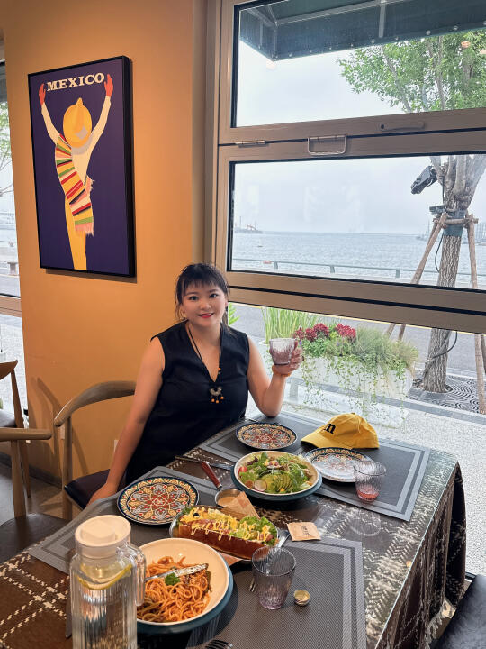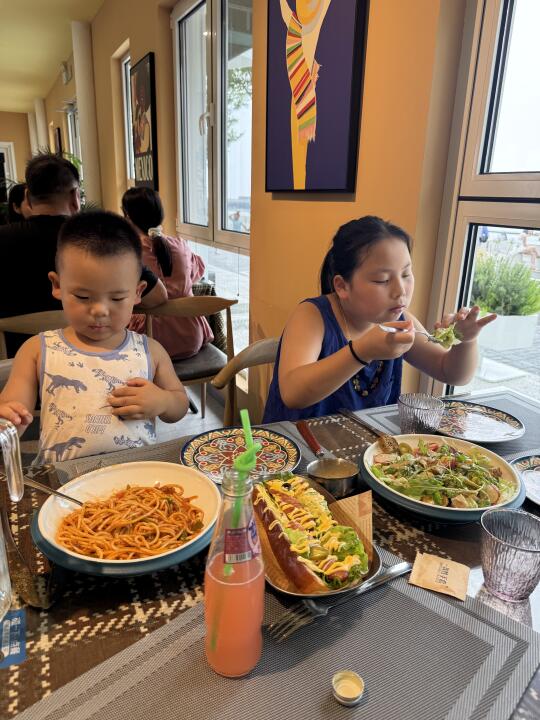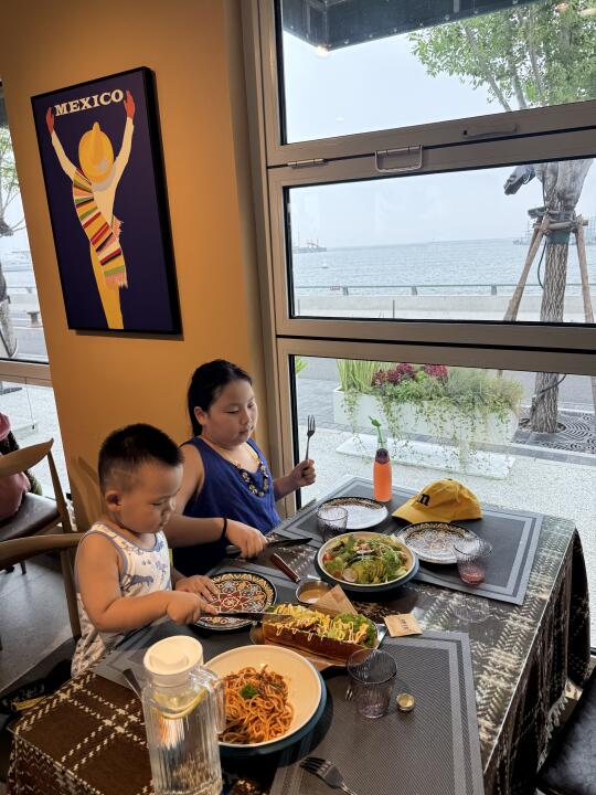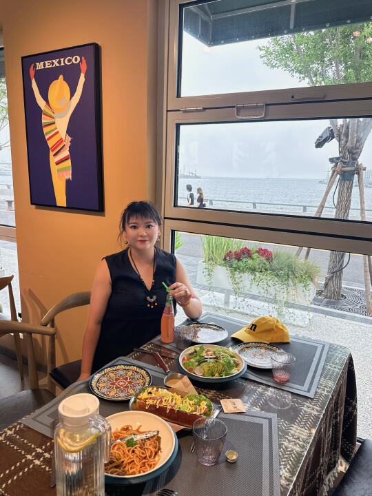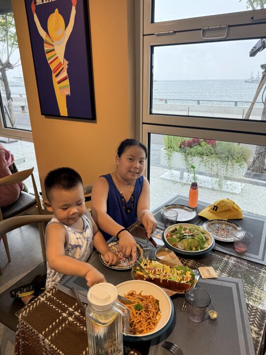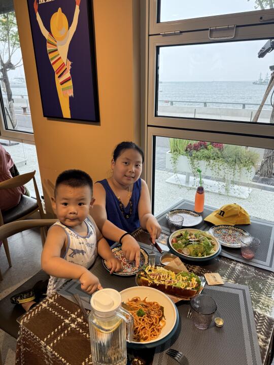 没想到这里面都是拍照好看的那种餐厅,咖啡店! 这个餐厅的热狗挺好吃!还有意大利面条,孩子都吃光了!😂(缺点就是有一点热,不那么凉快,店员说是集装箱的原因)