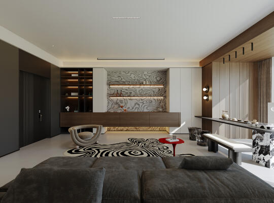 拒绝电视墙!昆明霸总的大横厅:意式轻奢+全屋艺术馆模式昆明豪宅天花板!无主灯+无电视+黑白意式极简,这才是真霸总审美