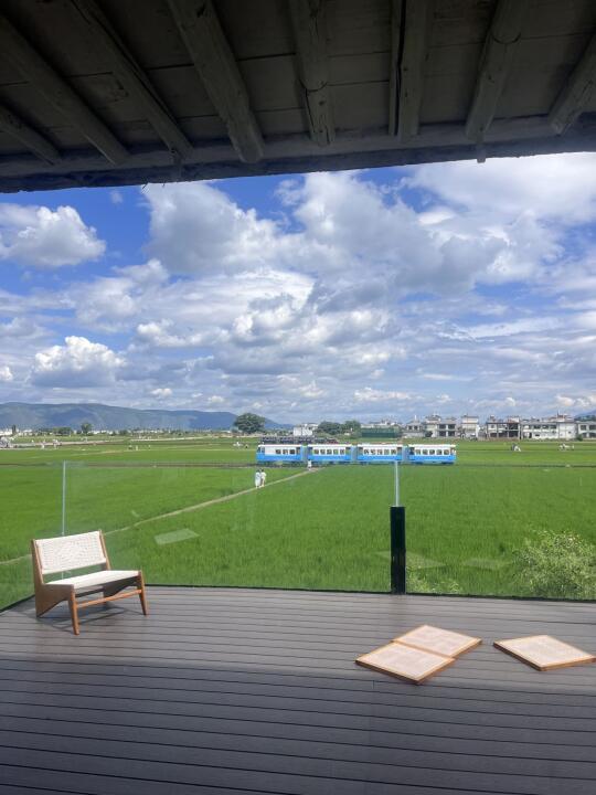 景观无敌:超大落地窗/露台直面绿色稻田(季节对的话),风吹麦浪吃饭太治愈!小火车缓缓走过,就像掉进宫崎骏的动画