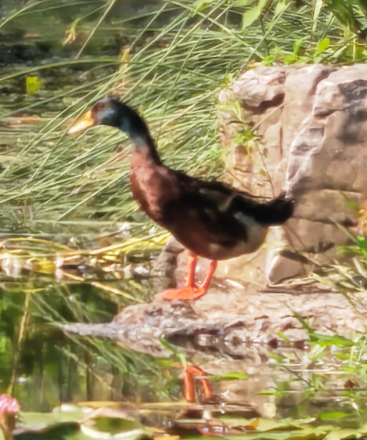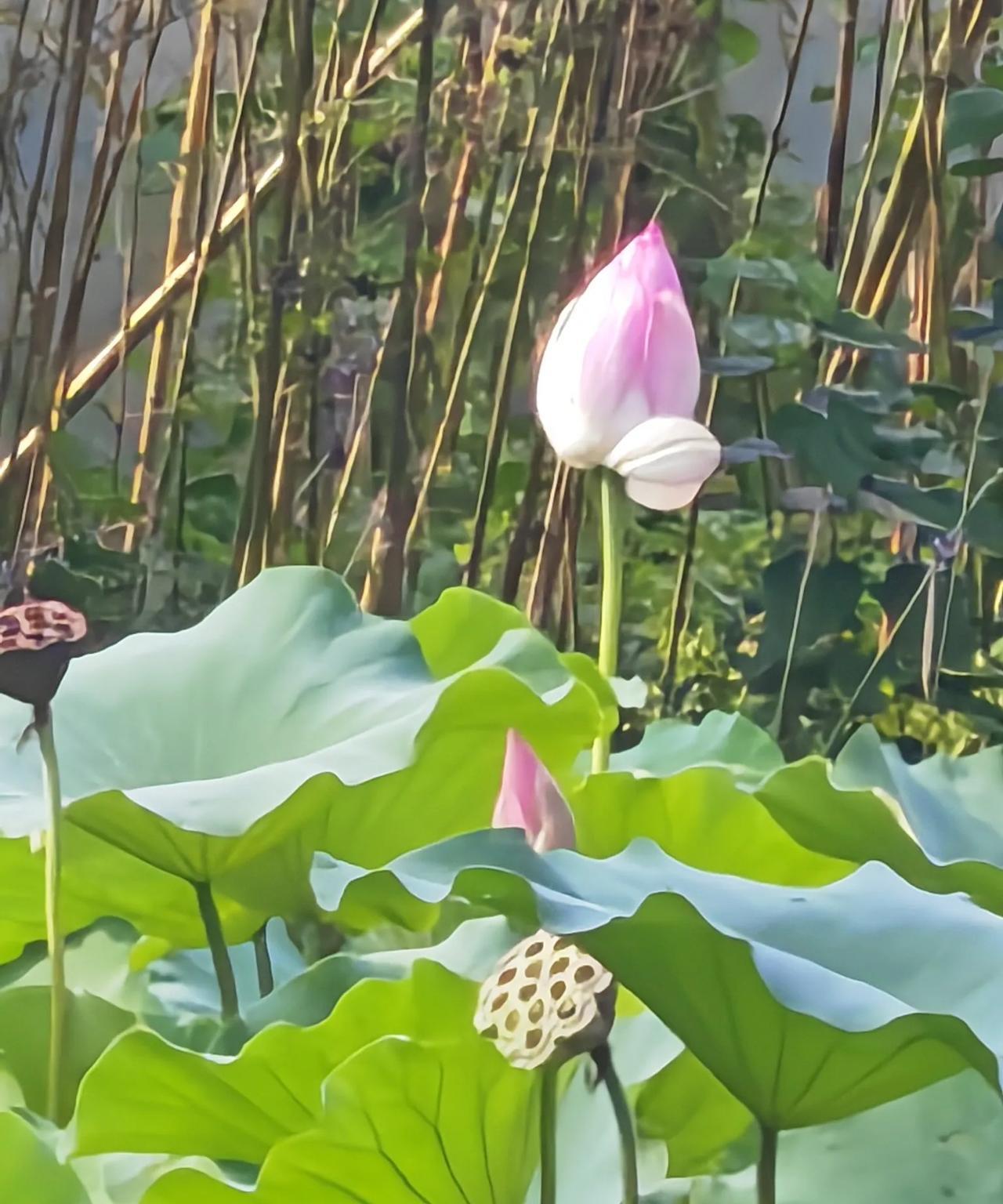 泉城到处都是热浪, 浑身大汗流淌。 坚持出门活动, 不能老在家里平躺。 天上白云飘飘, 也有小风袅袅。 树木喝饱雨水, 又在不断长高。 山下小池塘里, 荷花睡莲, 有的绽放, 有的含苞。 鸭子站在石上, 边晒太阳, 边梳羽毛。 乌龟甲鱼, 不知繁殖了多少。 塘边老人下棋打牌, 观战者不时助威喊好。