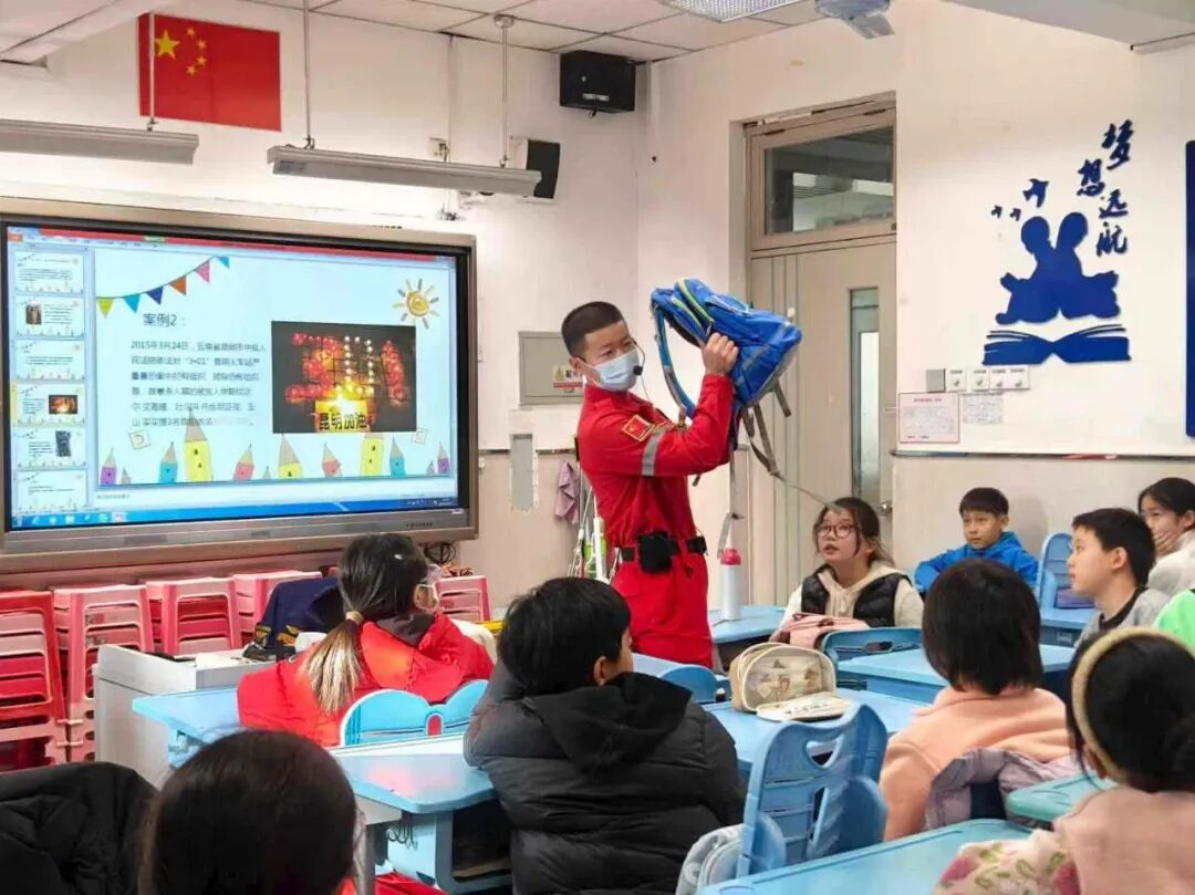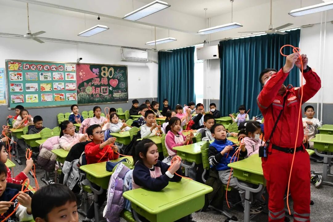 三年级开展消防安全知识技能学习,老师讲解火灾踩踏的易发地点、原因与应对方法,还教授同学们火灾逃生简易结绳法,帮同学们掌握实用自救技能。