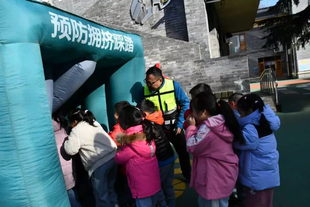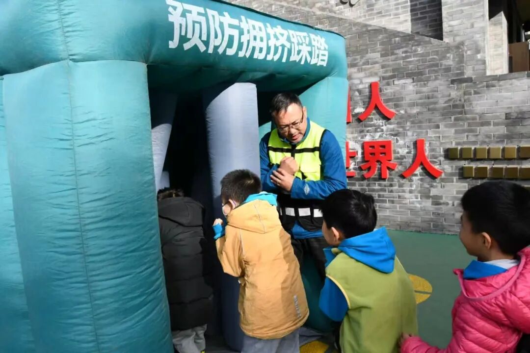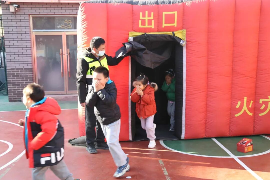 同学们穿过模拟拥挤的空间,实践学过的危险环境自我保护方法,练习迅速、有序的逃生技能。
