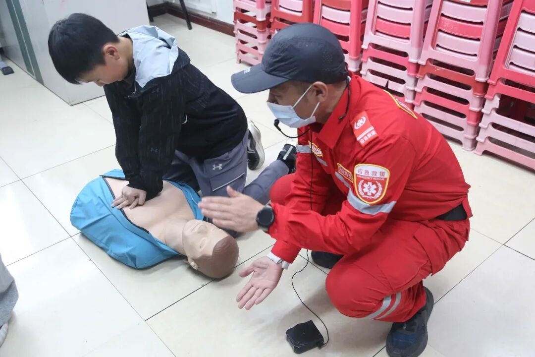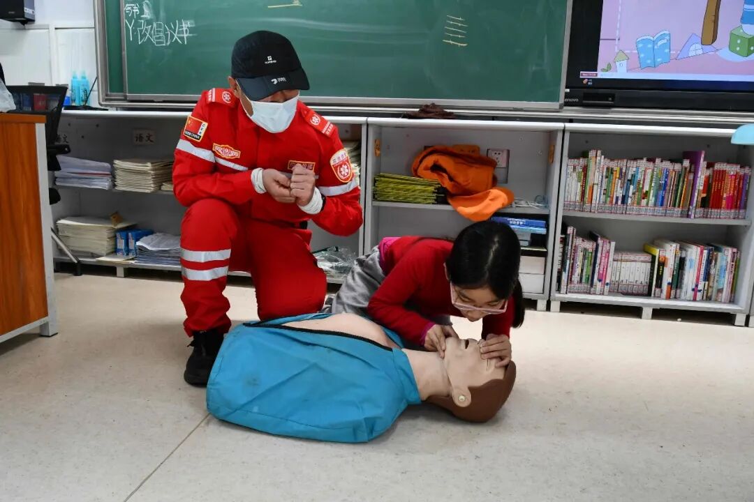 四年级的学生重点学习海姆立克急救法以及成人和儿童施救手法的区别,掌握异物窒息的急救技能,随后同学们还通过模拟教具实际练习了海姆立克急救法。