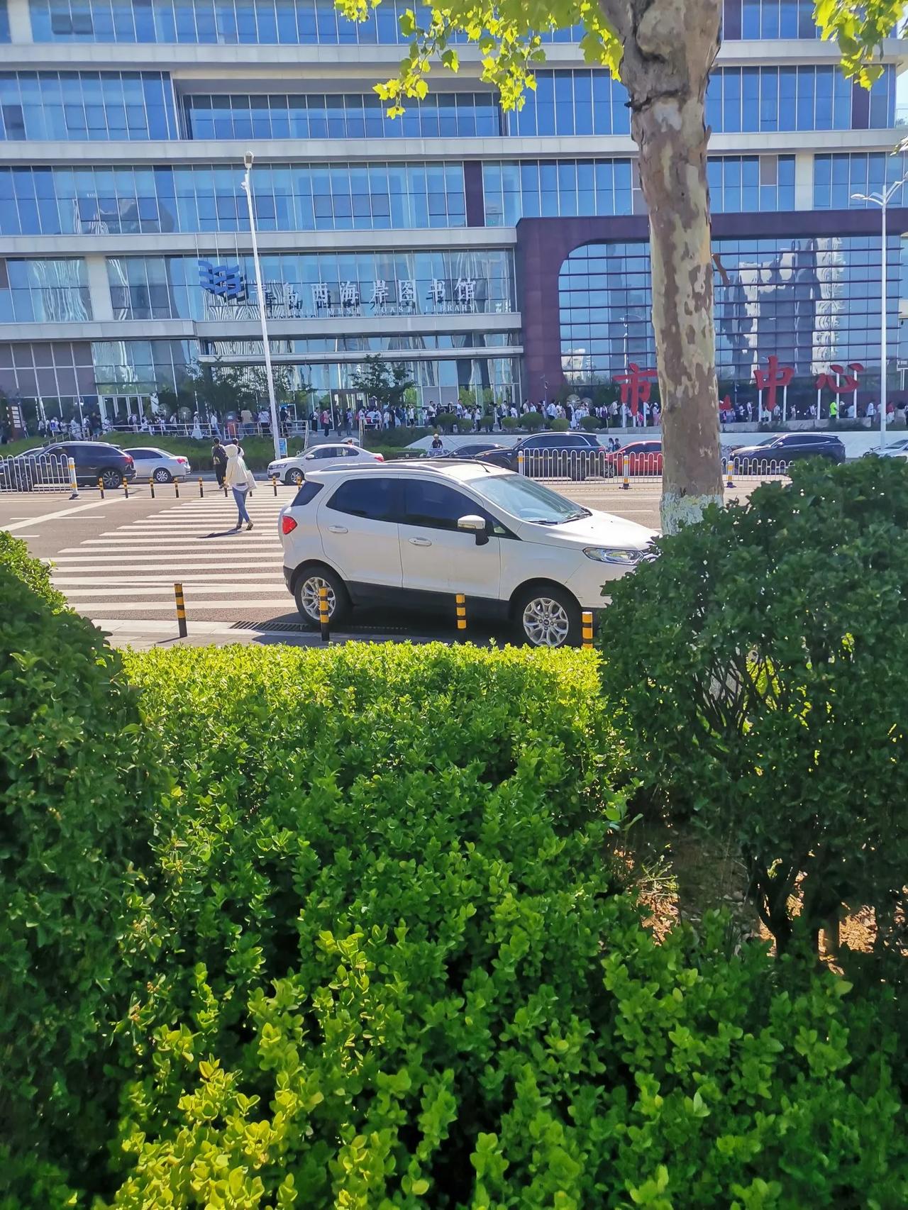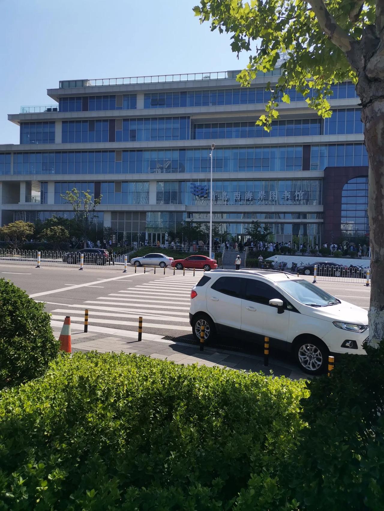 充电在夏日 周末的青岛西海岸图书馆门前,读者们有序进入大厅。
