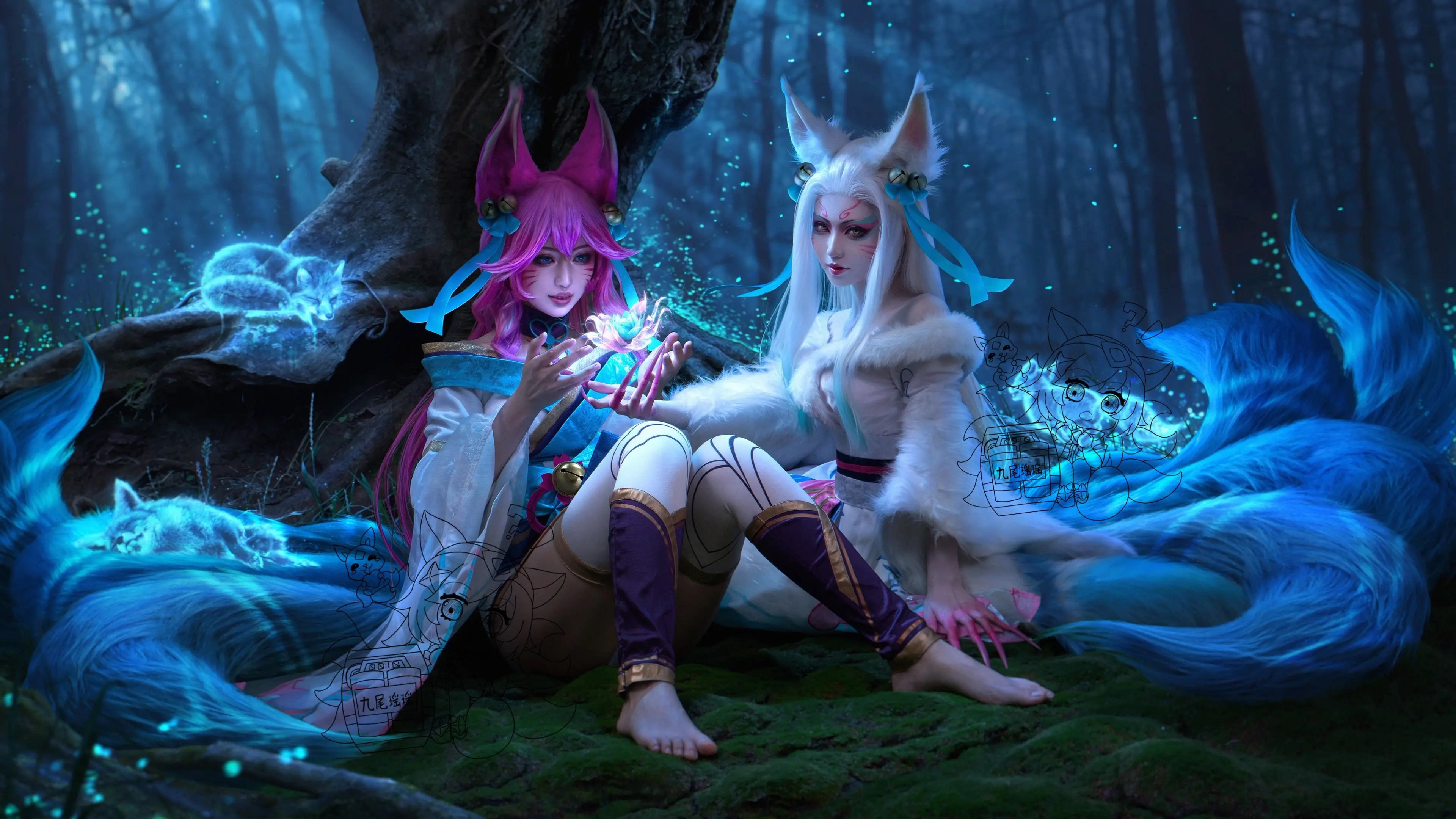 灵魂莲华双形态阿狸。双生绽灵 粉狐狸和白狐狸我都要