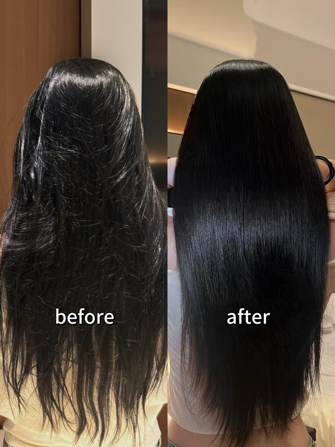 打理后头发完全不会有普通直板夹夹完的干涩感,反而像做了护理一样根根顺滑,连碎发都服服帖帖滴~ 另外还邀请了我沙发的朋友来体验了一下,她用完也是完全被安利到了!
