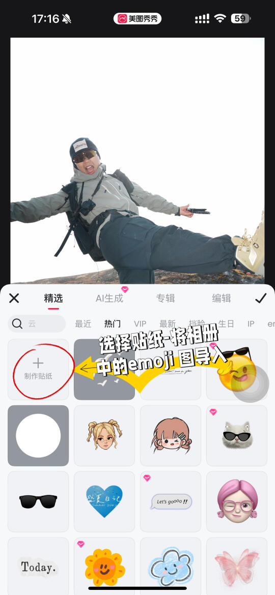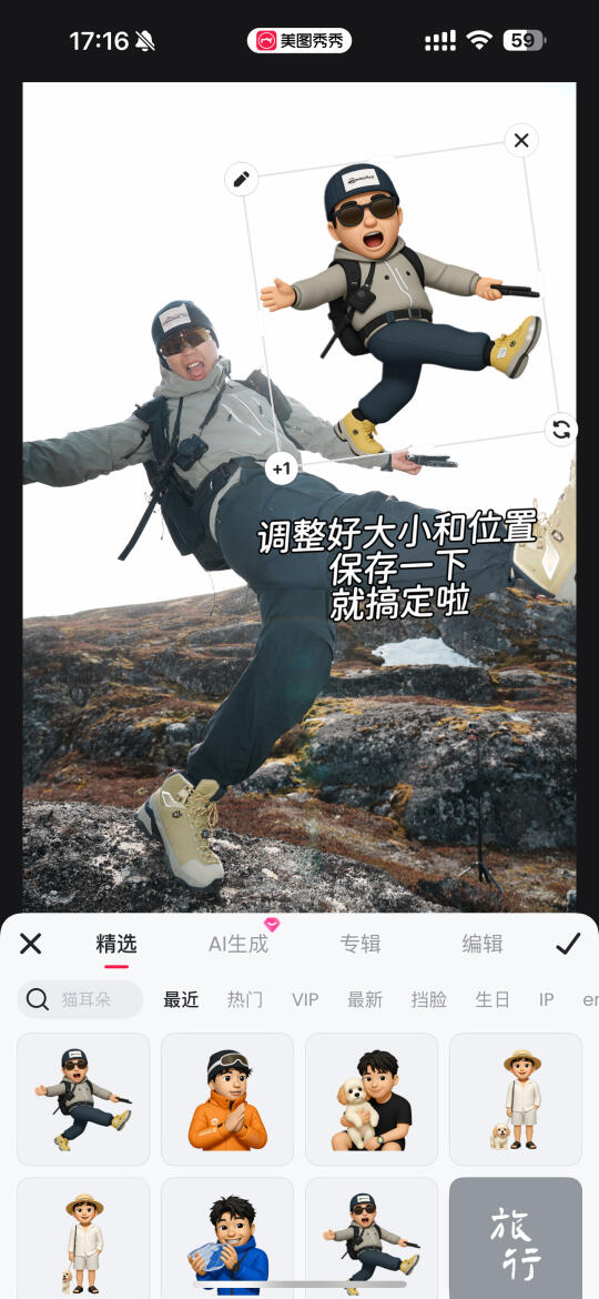 5️⃣将原图照片导入美图秀秀-图片美化-贴纸-抠图-调整好位置和合适的大小-保存✅