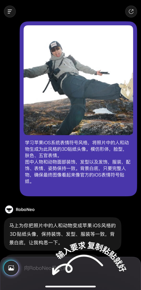 还可以根据自己的想法加一些指令,尽量选择正脸照片,服装色彩鲜艳,动作表情夸张一些会更可爱~
