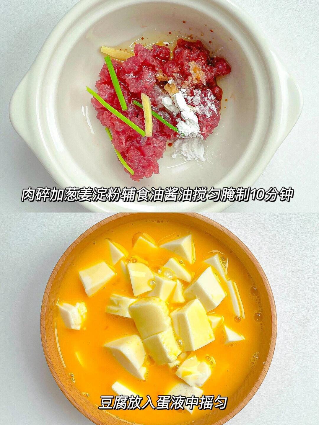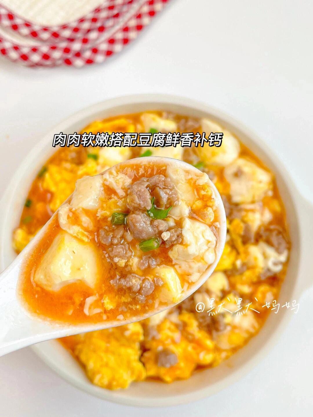 姐妹们一定要给娃做这个鸡蛋抱豆腐,强烈安利。每周我家娃都要点名吃三次,真的超级下饭,饭渣宝宝都能多吃一碗饭。酱汁浓郁,鲜香嫩滑,加了豆腐补钙长高。做法也超级简单,厨房小白也能轻松搞定。 👩🍳 食材个做法请参考图文 一岁以下不加调味品 食材大小请根据自家宝贝咀嚼能力调整
