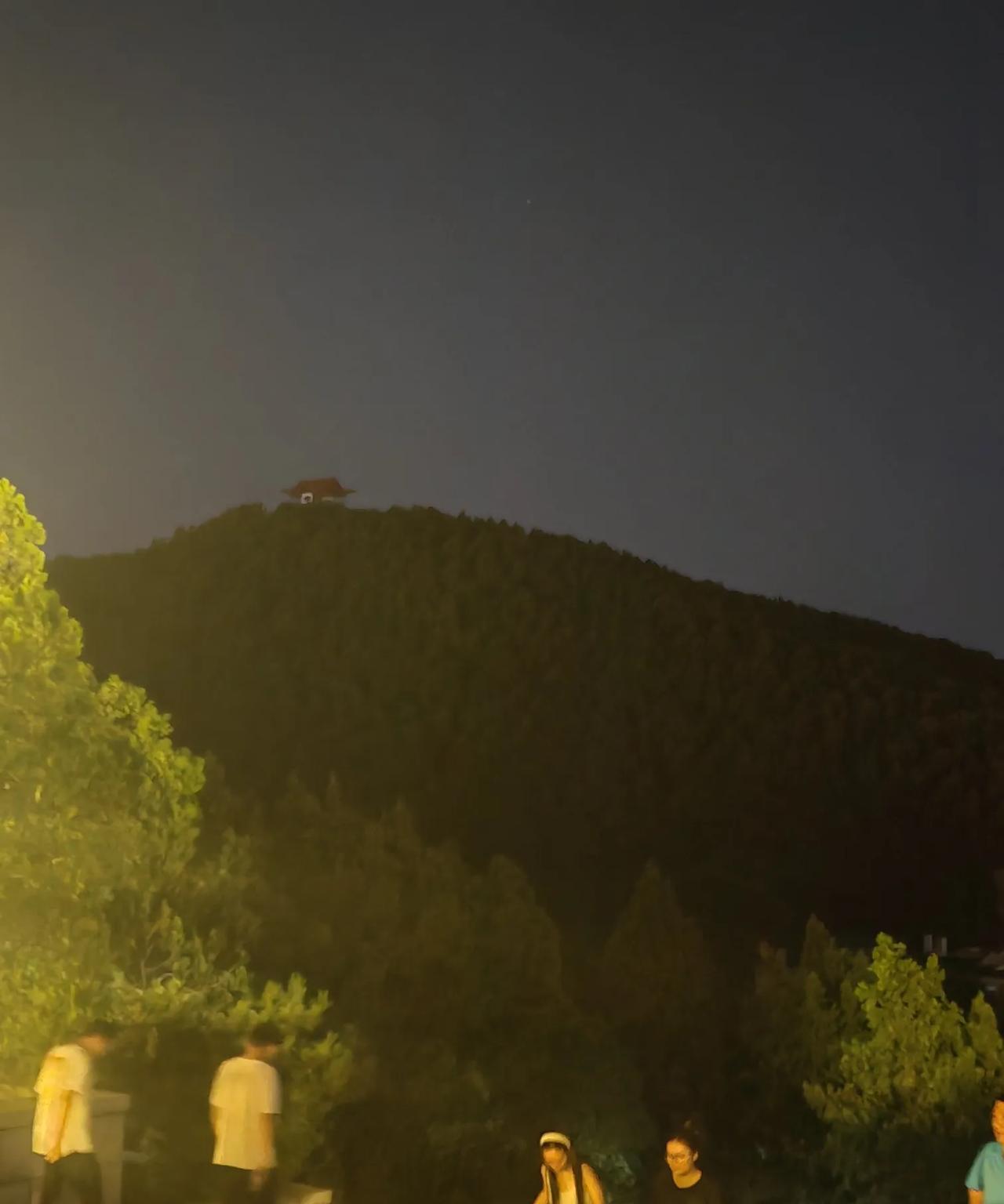 傍晚,连续不停地转了几个山头,已经浑身大汗。到了英雄山上,也没有凉风。上来锻炼活动游玩的男女老少有不少,挺热闹的。在石阶上找个靠近灯光的地方坐下来,休息休息,喝喝水,看看夜景,再玩玩手机。刚才爬过的几个山头看上去黑沉沉的。只有顶上的楼阁,在天幕映衬下,能看到些轮廓。大暑将半,夏天到了末尾。尽量多看看它的风景吧。