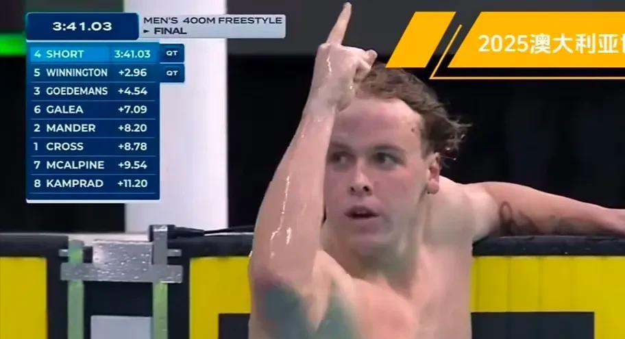 3分39秒96! 16年铁墙被捶碎 德国小伙马尔滕斯刚在德国杯又游进3分41 澳洲肖特选拔赛3分41秒03贴着尾巴 今晚新加坡水立方,俩怪物同池 400米自由泳一枪定江山 谁慢0.01秒,谁就得再熬四年 泳池边的计时板像心跳,咔哒一下就是命运翻面 破纪录不靠奇迹,靠把肺和意志磨成螺旋桨 观众席手机快门还没响,水面已炸出白色闪电 纪录存在的意义,就是被下一次划水推翻