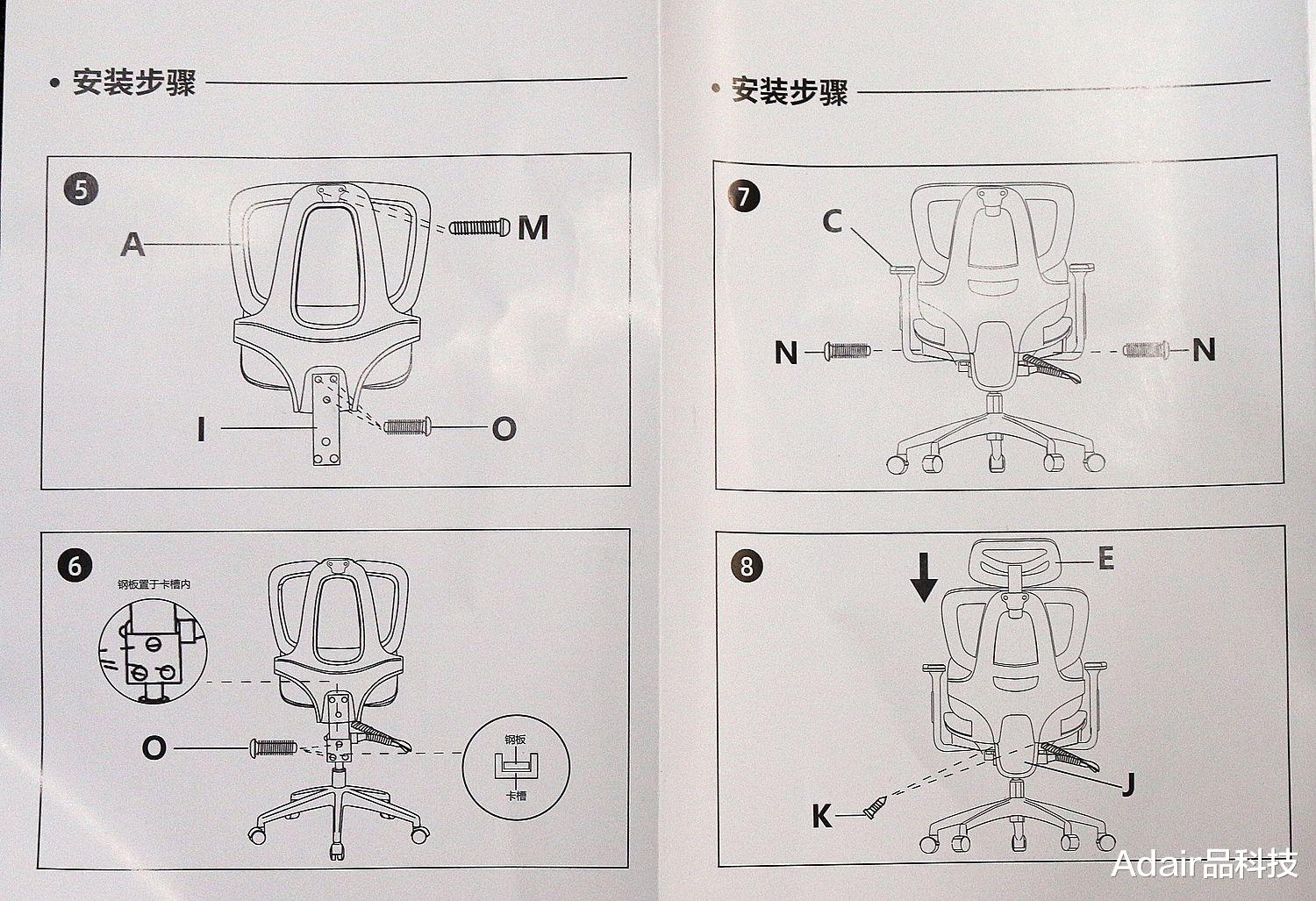 组装椅子的安装也不麻烦,按着说明书的步骤,8步即可搞定。