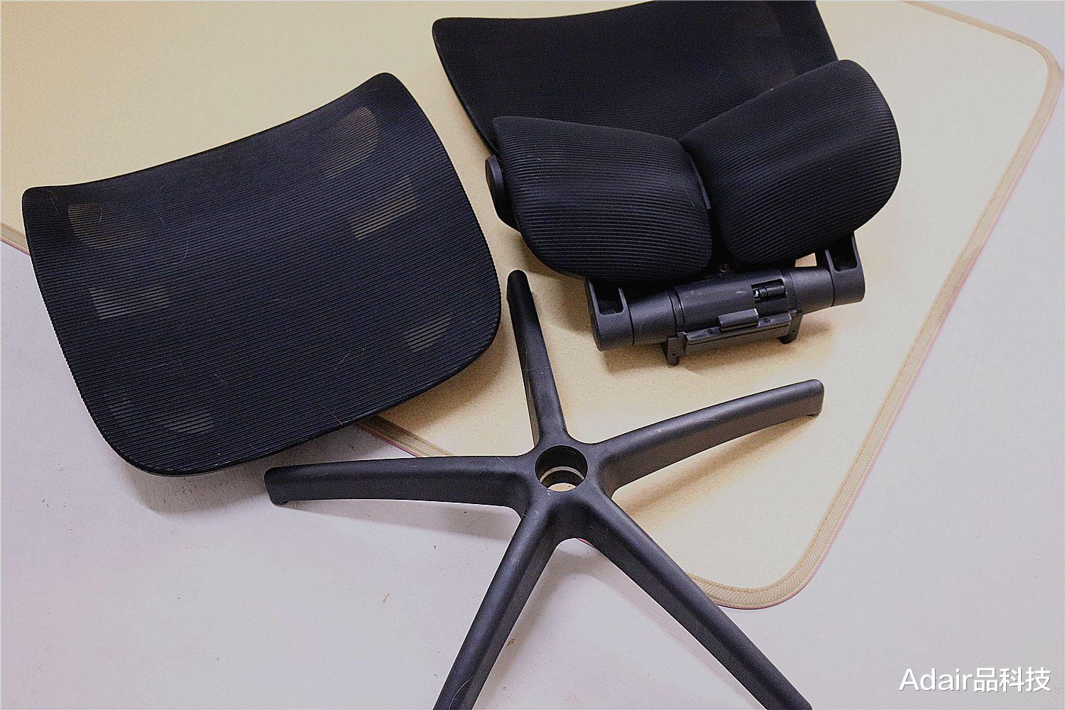 椅子净重35斤左右,各个部件都有塑料泡沫包裹,装得满满当当。拆解后的包装箱体积还算合理。