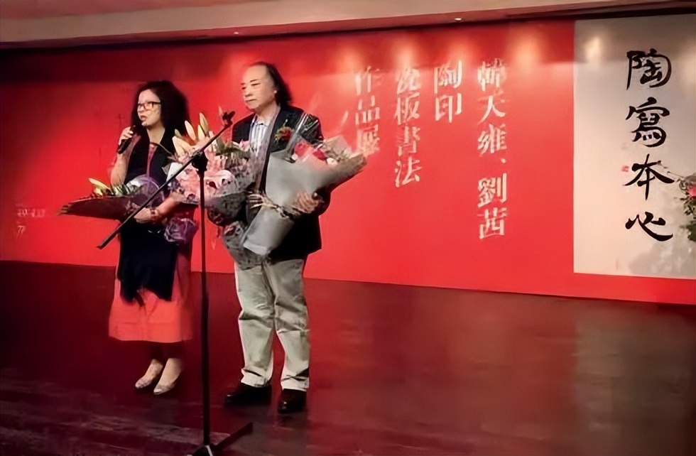 与夫人刘茜在“陶写本心——韩天雍、刘茜陶印作品展”