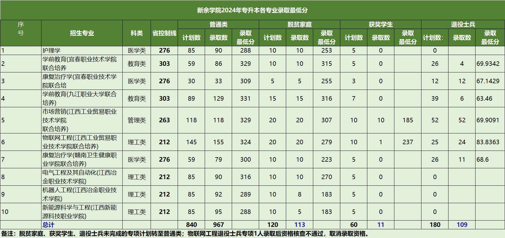 新余学院专升本2025年共招1080人,普通计划招生840人,2024年招生1300人,普通计划招生195人,相比2024年,2025年专升本招生共缩招120人。
