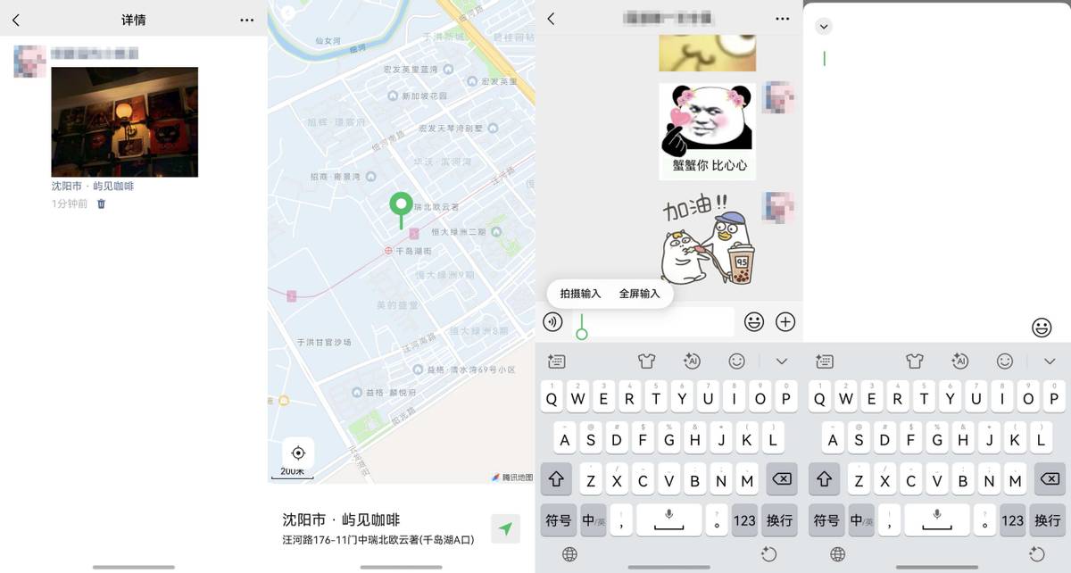除此之外,还有几个小细节也蛮不错,比如朋友圈中有动态带了地址,点击地址可以直接跳转到地图导航;在聊天界面长按输入框,就能选择进入全屏输入模式,写长文案的时候视野会开阔很多,看着也更舒服。
