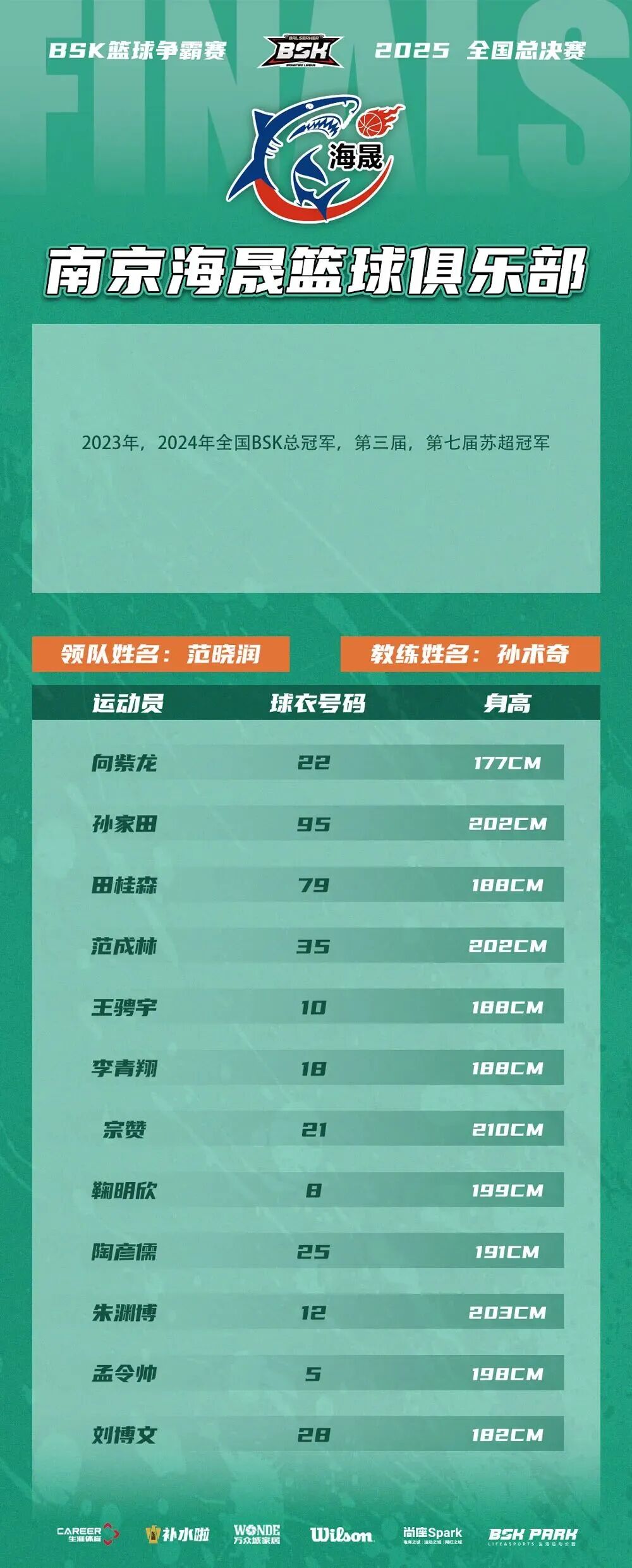 本届BSK全国总决赛吸引了来自全国的顶尖球队参赛,包括2023年与2024年连续两届BSK总冠军南京海晟篮球俱乐部,以及山西省篮球联赛冠军山西安益煤业男篮等传统强队。赛事还邀请了国际队伍参与,马来西亚柔佛南虎篮球队将亮相赛场,为赛事增添了国际化色彩。