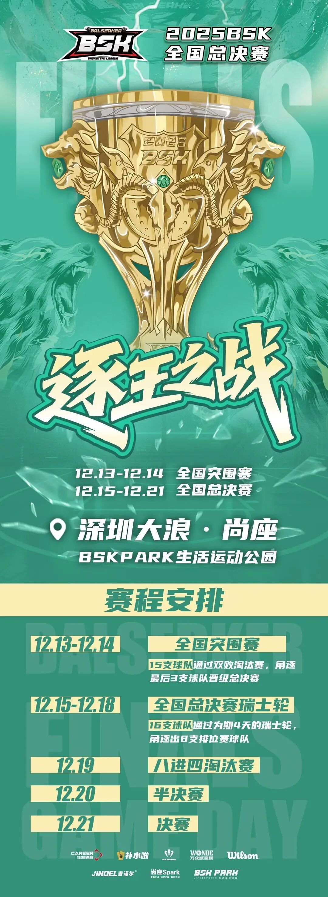 万众瞩目的2025BSK全国篮球争霸赛终章之战即将打响!12月13日至21日,这场覆盖285座城市的顶级业余赛事,将在万众城集团尚座Spark园区迎来巅峰对决。由集团旗下生涯体育精心筹备的这场篮球盛宴,将以专业赛事水准与多元产业联动,书写“体育+商业”融合发展的新篇章。