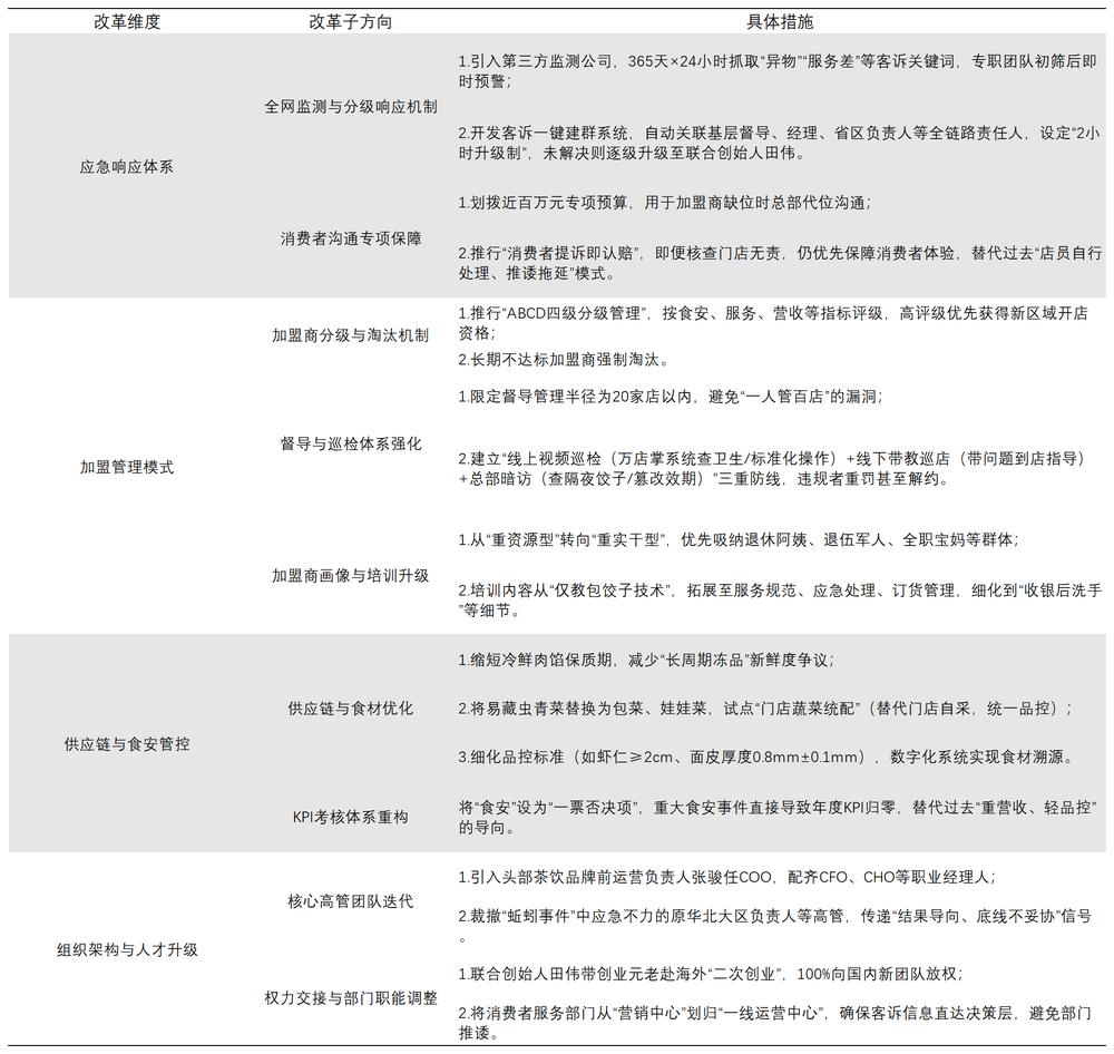 为挽救“饺子帝国”的命运,2025年,袁记云饺从应急响应机制到加盟管理体系,从供应链优化到组织架构调整,开启一场“刮骨疗伤”式的全面改革。