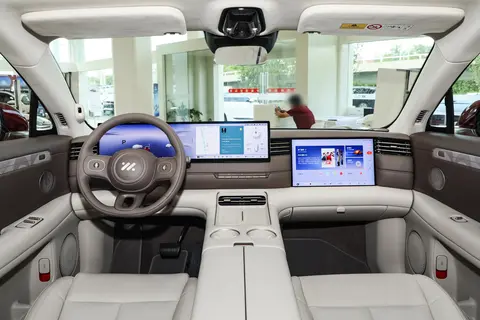坐进车内,科技感和豪华感融合得挺好。最吸引眼球的是那块5K双联屏,屏幕分辨率很高,显示效果细腻,色彩鲜艳,视觉体验非常棒。屏幕尺寸够大,无论是导航还是多媒体娱乐内容,切换都很流畅,几乎没什么卡顿。操作界面设计得也很人性化,功能分区清晰,很多功能只需简单几步就能找到,用户体验做得很好。对于我这种不是特别懂高科技产品的人来说,上手非常快,省去了摸索的时间。