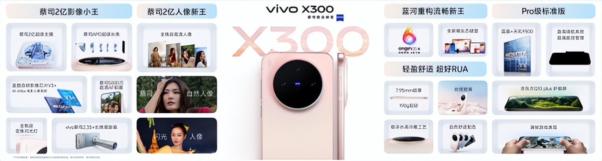 X300则将Pro级的影像能力带给更偏爱小尺寸机身的用户。X300的主摄选用与X300 Pro长焦同款的蓝图×三星HPBlue传感器,并将其打造为一颗具备1/1.4英寸大底、f/1.68光圈及CIPA4.5专业级防抖的蔡司2亿像素超级主摄。强大的硬件实力,使得用户可以享受“先拍摄,后构图”的创作体验。