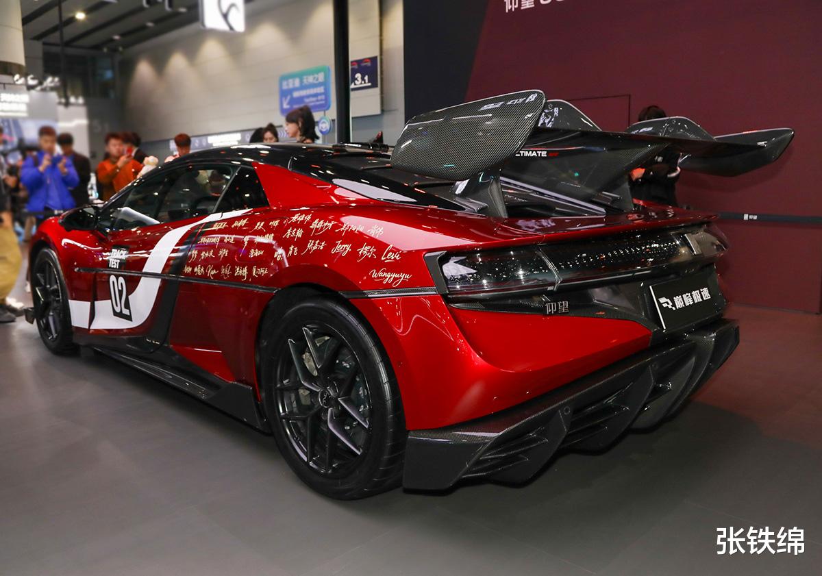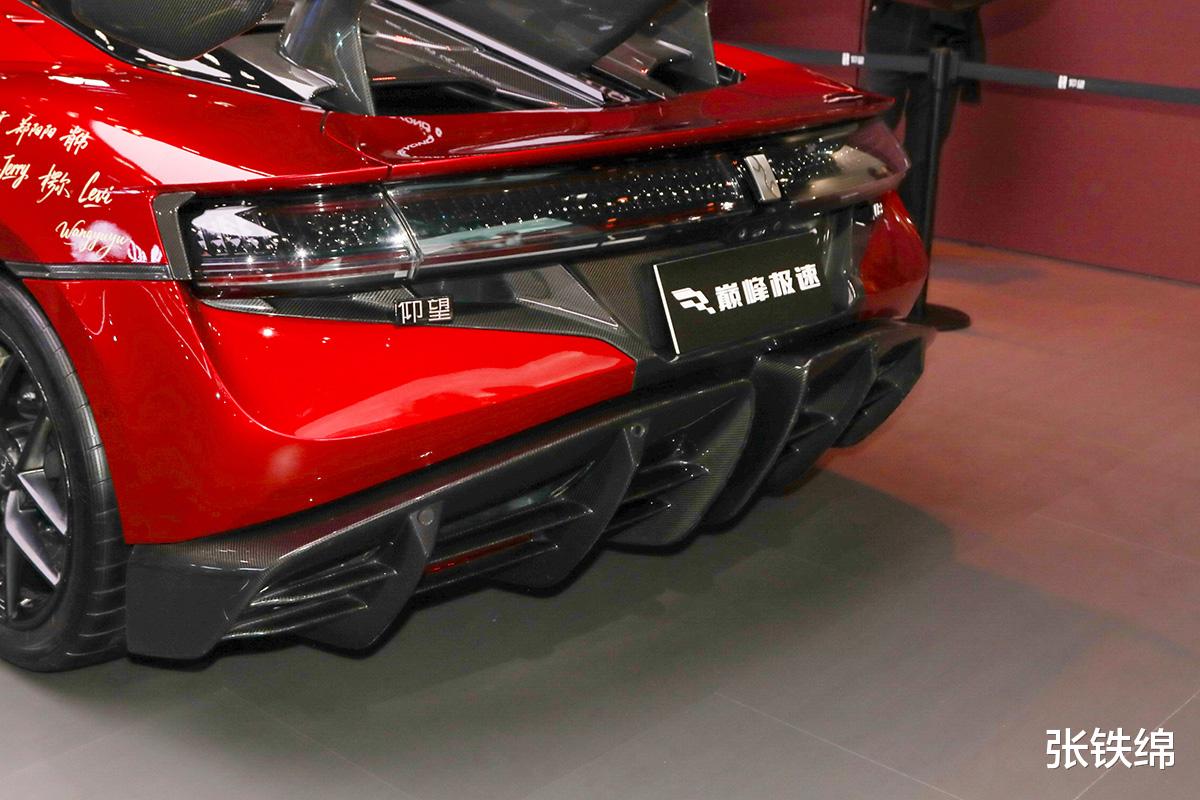 这辆仰望U9Xtreme版标配了碳纤维车顶,并提供电动碳纤维天鹅颈大尾翼,另外还使用了前后20英寸碳纤维轮辋以及碳陶制动系统,匹配的是半热熔轮胎。