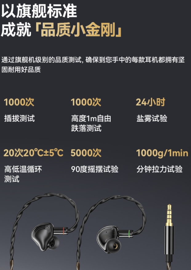 在品质管控方面,西圣HiFi 1通过多项旗舰机级严苛测试,包括1000次插拔、1000次自由跌落、24小时盐雾、5000次摇摆、1000g拉力及高低温循环实验,确保长时间稳定使用表现,经受真实场景考验。