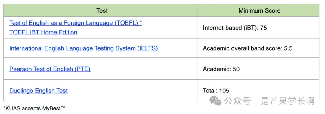 托福(含家考、拼分)75及以上、雅思5.5及以上、PTE 50及以上、多邻国105及以上