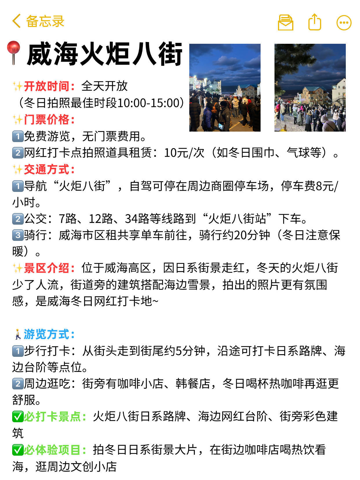 威海冬天真的蛮安静的,适合想放松看景的人~但海边风大温度低,一定一定要穿羽绒服+厚裤子!交通建议打车,雪天公交等得久。我们玩了三天两夜,人均大概花了1500左右,性价比还不错😌