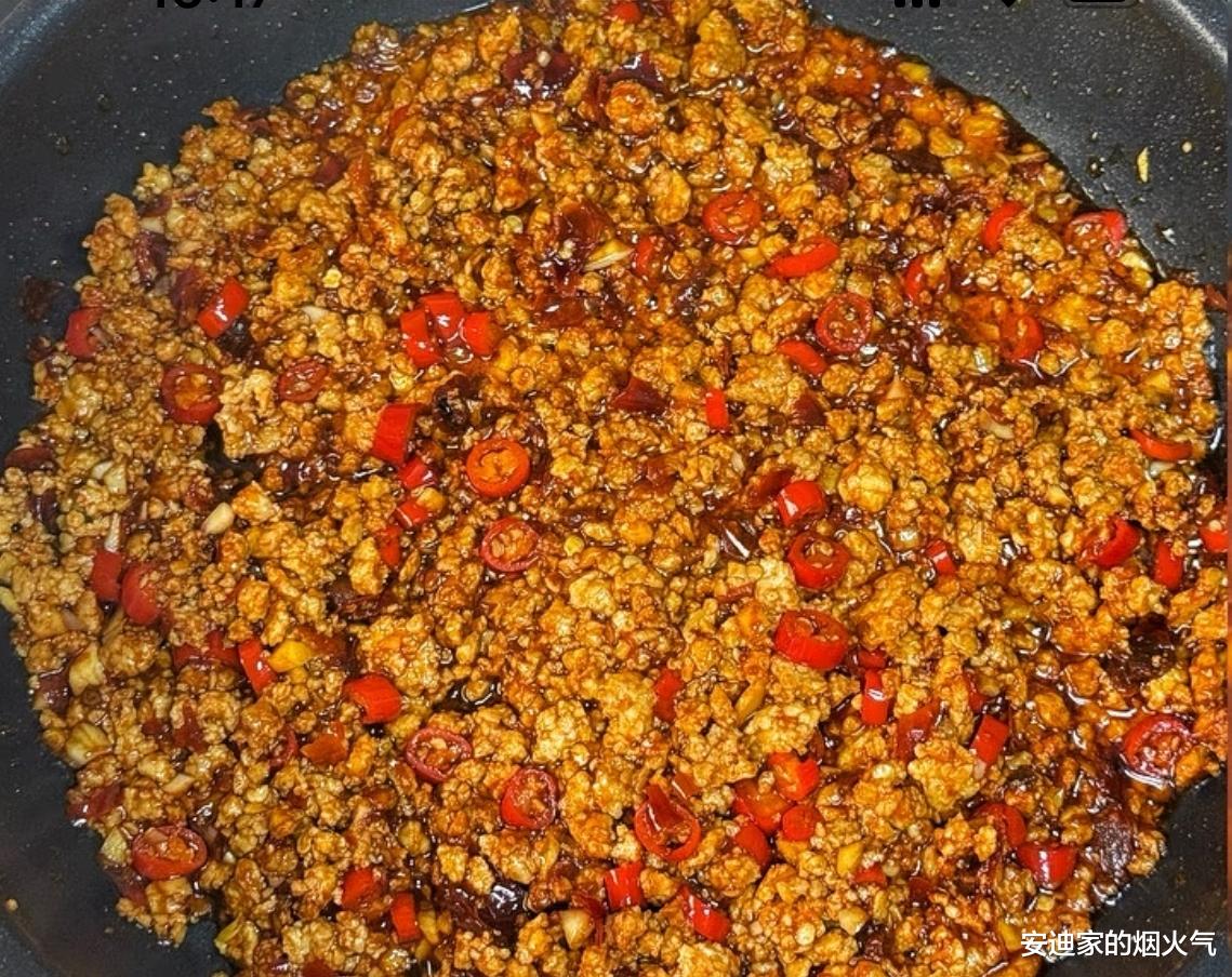 炒料是麻婆豆腐香味的灵魂密码,这一步决定了整道菜的风味层次。锅里倒入适量食用油,油温烧至六成热时,把备好的肉末倒进去快速翻炒,等肉末变色出油,舀上一勺郫县豆瓣,再加入姜蒜末和小米辣,转小火慢慢翻炒。随着油温升高,豆瓣的酱香、姜蒜的辛香和小米辣的鲜辣逐渐融入油中,浓郁的香气瞬间弥漫整个厨房,勾得人直咽口水。