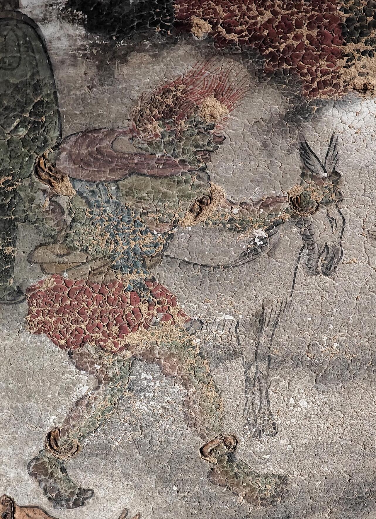 转身走进寺内,明代的壁画在幽暗的殿宇里缓缓铺展。十殿阎君的形象栩栩如生,线条遒劲有力,色彩虽已有些暗淡,却依旧能感受到当年画师的匠心。壁画上的地狱故事没有刻意渲染恐怖,反而带着一种劝人向善的温和,人物的表情、动作都刻画得细致入微,连衣纹的褶皱都清晰可见。站在壁画前,仿佛能看见明代的画师提着画笔,在昏暗的光线下,一笔一画地勾勒出这些形象,他们或许不是大名鼎鼎的画家,却用最虔诚的态度,完成了这幅传世之作。壁画与藻井遥遥相对,一个在壁上,一个在穹顶,一个绘人间善恶,一个藏天地玄机,共同构成了定林寺的精神内核。