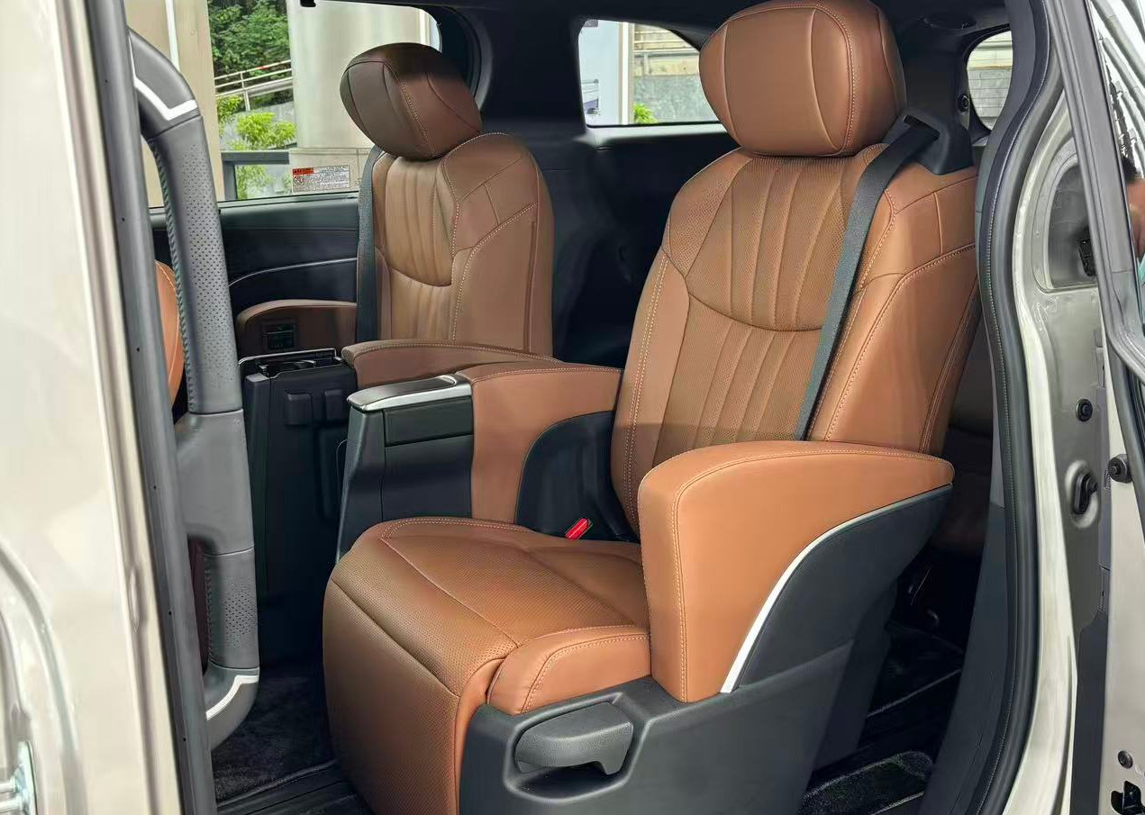 为了进一步提升驾乘舒适度,新车整车采用半苯胺奢华真皮材质进行内饰包覆,升级了后排中门饰板软包,拥有高级真皮方向盘,其上下车扶手也升级为打孔皮革包覆,加上镀铬装饰点缀,舒适的同时,豪华气息满满。与此同时,新车还安排上了百万级豪华MPV——雷克萨斯LM同款头等舱座椅,支持三挡座椅通风、座椅加热,夏季女性驾乘也不怕汗湿衣物的尴尬,冬天也能温暖一个季节,同时守护特殊日子的女性,若是常坐办公室的白领,还有16点气动按摩帮你舒缓上下班的疲惫。