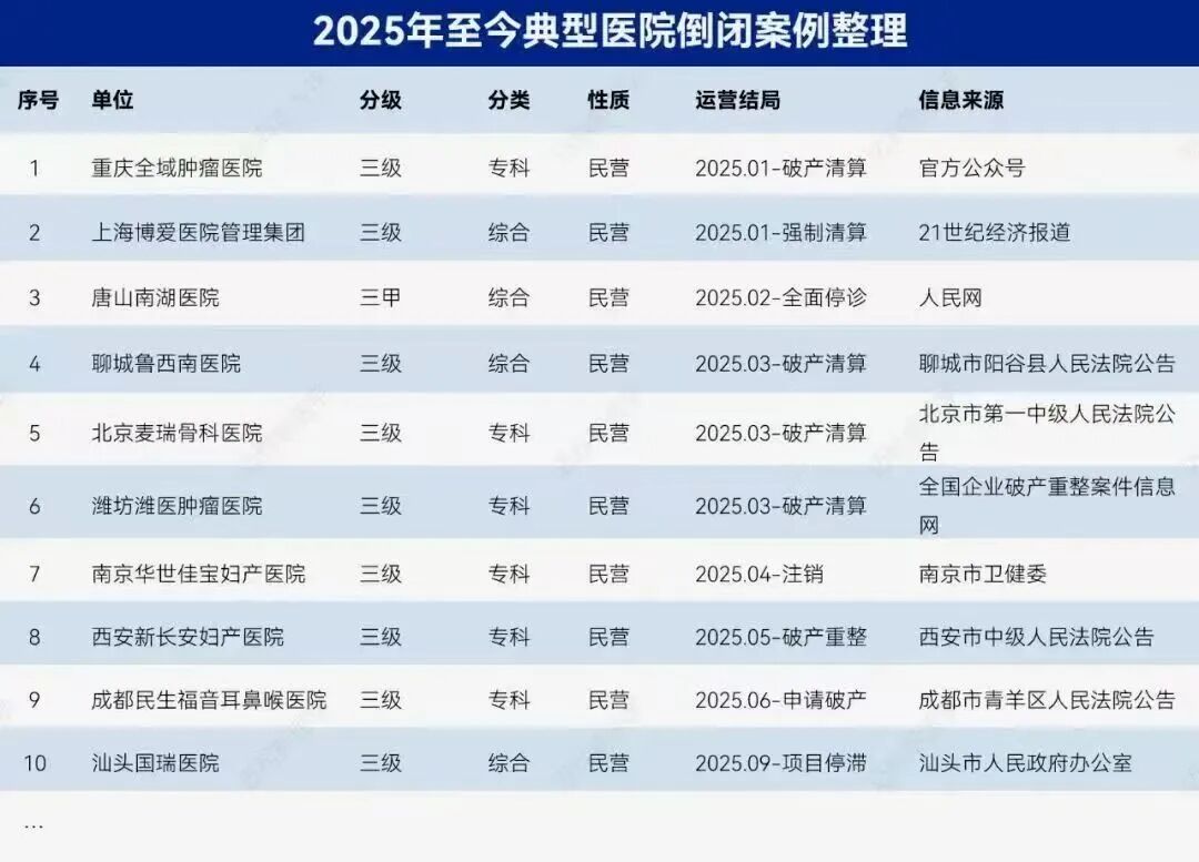 一句话总结:放弃了自身的灵活性与差异化优势,非要跑到公立医院最擅长的普惠医疗赛道里硬刚,既丢了医疗的核心本质,又失去了患者的信任,倒闭,就成了它们唯一的宿命。
