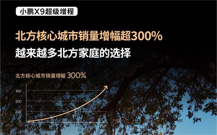 此外,在地域上小鹏X9超级增程也打破了南北偏见,北方核心城市销量增幅超300%,其全球首发的冰雪稳行系统,以及⼤⾏程双腔悬架、主动式后轮转向、智能⼤扭矩精控三⼤核⼼系统,提供了雪地模式、脱困模式,精准契合北方用户的冬季用车需求。