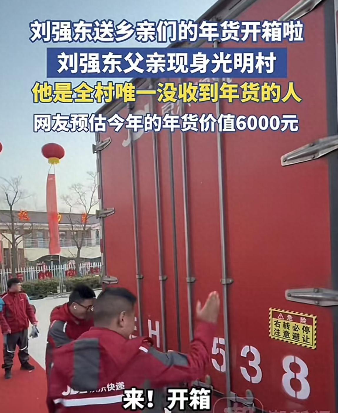 因为刘强东很大方,只要是光明村的人,发的年货都一样。