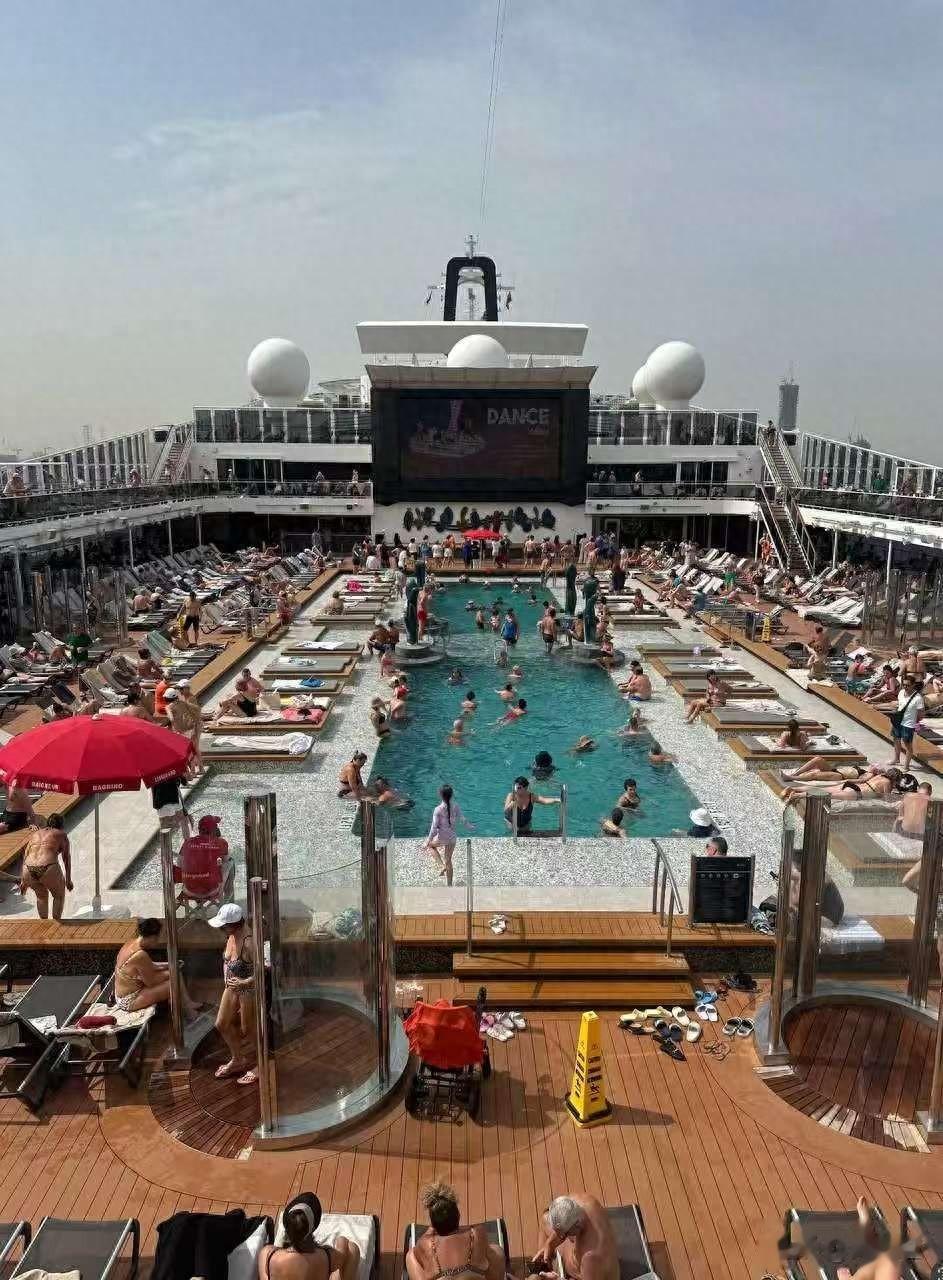随后,船方又通知游客,建议他们都留在船上,这里有免费的Wi-Fi,全额退还岸上观光费用,同时还承诺24小时供应餐饮,开放泳池和剧院等设施。