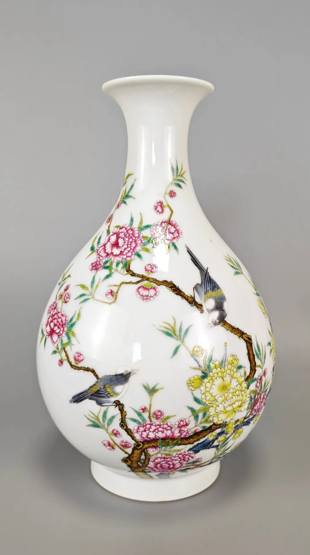 珠山八友徐仲南粉彩花鸟四方瓶(一对)