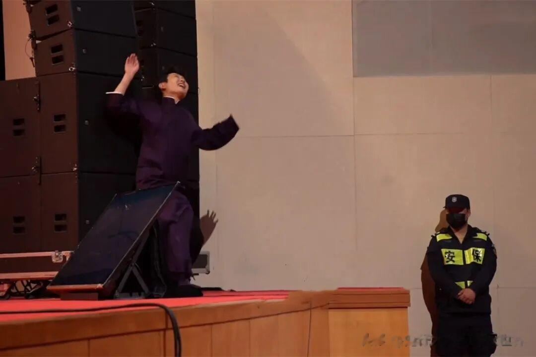 为了让大家觉得自己功夫真实,孟鹤堂开始挑战舞台两侧的安保人员。忙活了一阵,安保人员既没有随着观众笑场,又没有配合孟鹤堂,而是敬职敬业,坚守岗位。