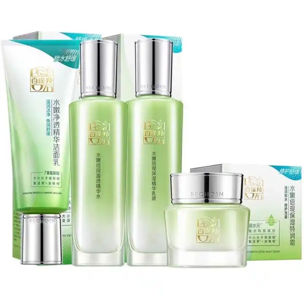 {1} 百雀羚 水清漾套装经典保湿套装,配方温和,专为亚洲肤质设计,无酒精、无香精,敏感肌友好。含透明质酸钠和凝水元科技,能在肌肤表面形成“锁水网”,持久保湿。