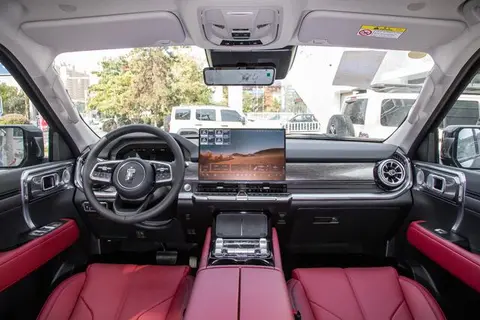 前脸加大尺寸格栅搭配横向镀铬饰条,下包围优化为平直线条并新增黑色装饰件,31.6米照射距离的高功率LED雾灯提升实用性。尾部绯红光翼尾灯集成智驾“小蓝灯”,外挂备胎升级为坦克300(图片|配置|询价)同款快拆式罩壳,拆装时间缩短近5分钟,大幅提升改装便利性。车身尺寸为4964×1970×1905mm,轴距2850mm,车顶标配禾赛ATX激光雷达,科技感与越野气场完美融合。