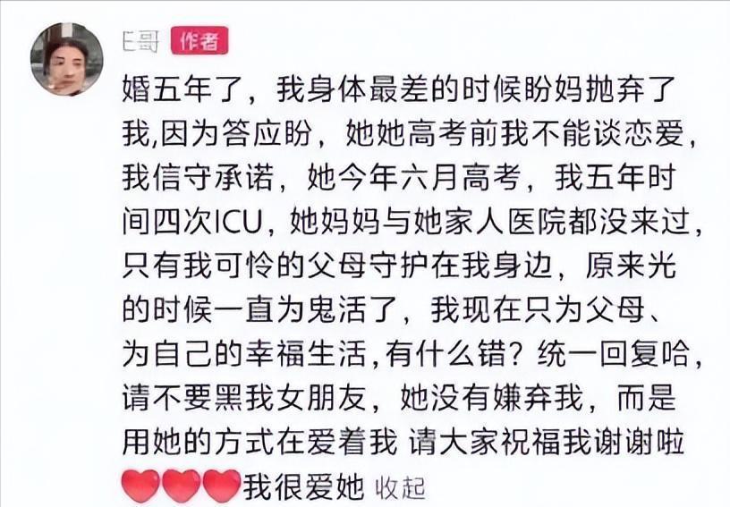 在一片祝福的声音里,竟然也夹杂着那些刺耳的疑问。有的人还算了算时间,说女儿高考刚过去半年,就把新恋情曝光了。