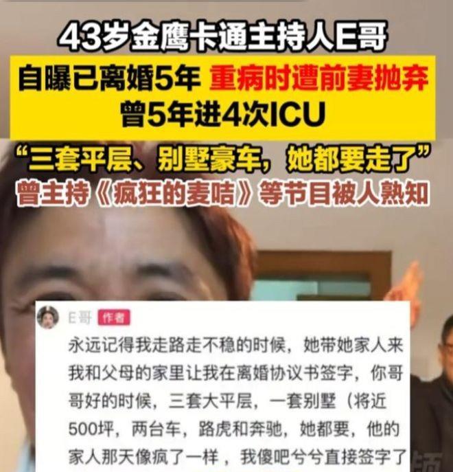 据E哥后来在网友质疑的时候坦言,在他病得最厉害,甚至“走路都走不稳”的时候。
