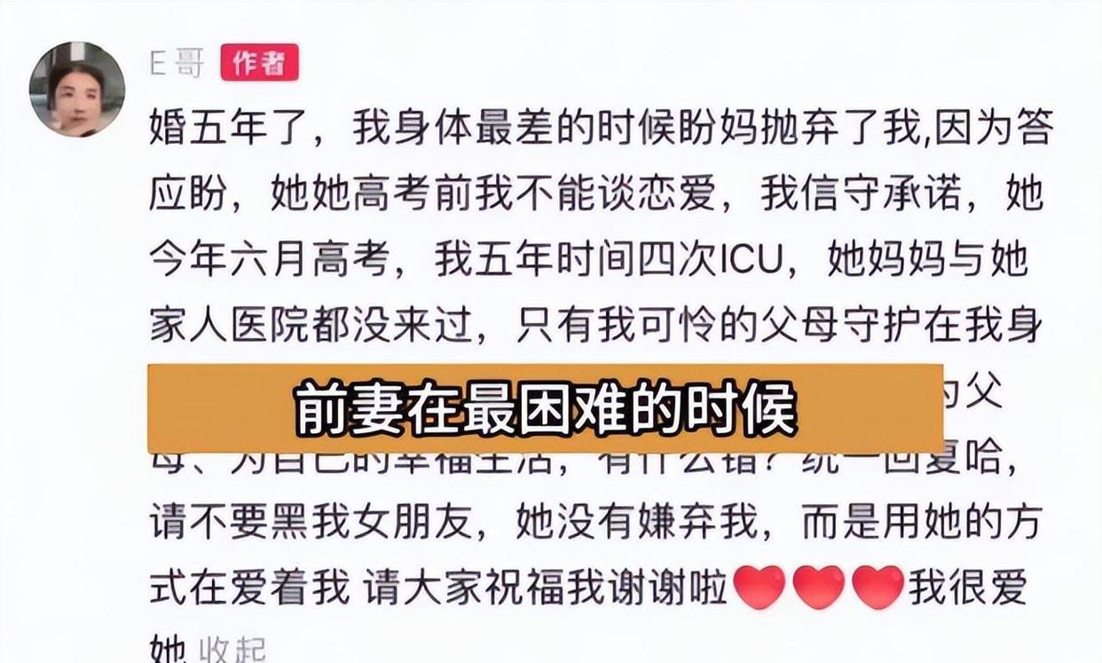 他那四次进ICU、与死神拼命的时候,前妻和她家的人,一次都没有出现在他的病床前。
