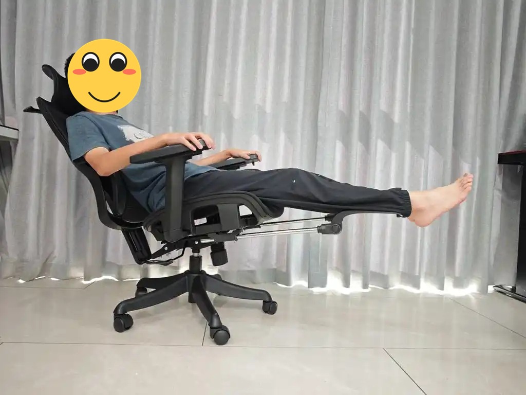 除了核心的护腰、支撑和调节功能,夏草木fit2的细节设计也十分贴心,每一处都贴合久坐人群的使用需求。椅子配备隐藏式伸缩腿托,拉伸顺畅,收纳后能与椅面完美融合,不占用腿部空间,搭配145°无极后仰,午休时拉出腿托,就能平躺休息,让身体完全放松,快速缓解久坐带来的疲劳,堪称久坐党的午休神器。