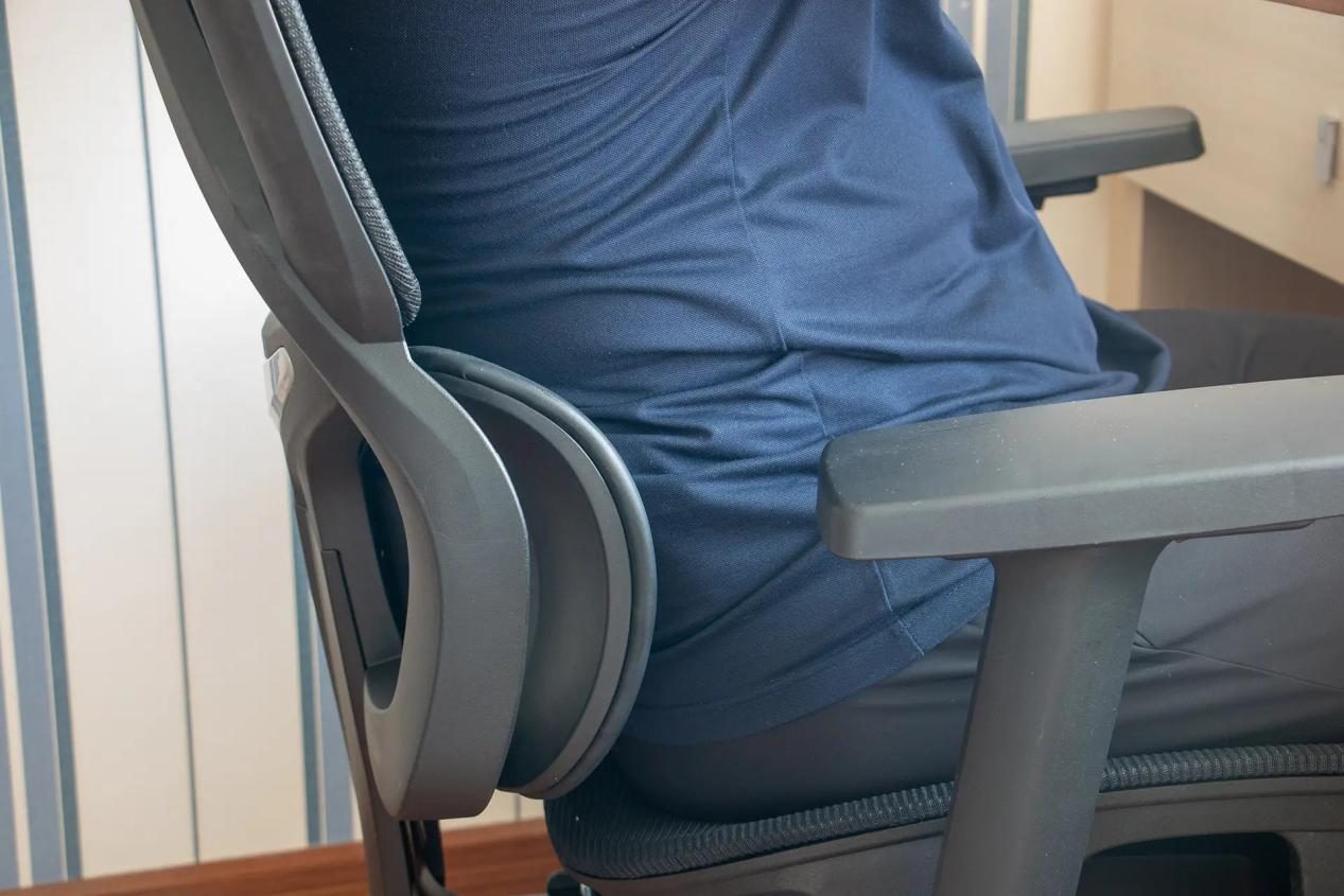 护腰效果:椅背采用仿生脊柱曲线设计,对颈、胸、腰、骶都有一定贴合,独立腰靠可上下调节约 6 厘米,能适应不同身高的腰部位置;缺点是腰靠仅支持上下调节,无法前后微调,对腰部曲线的贴合度不够精细。